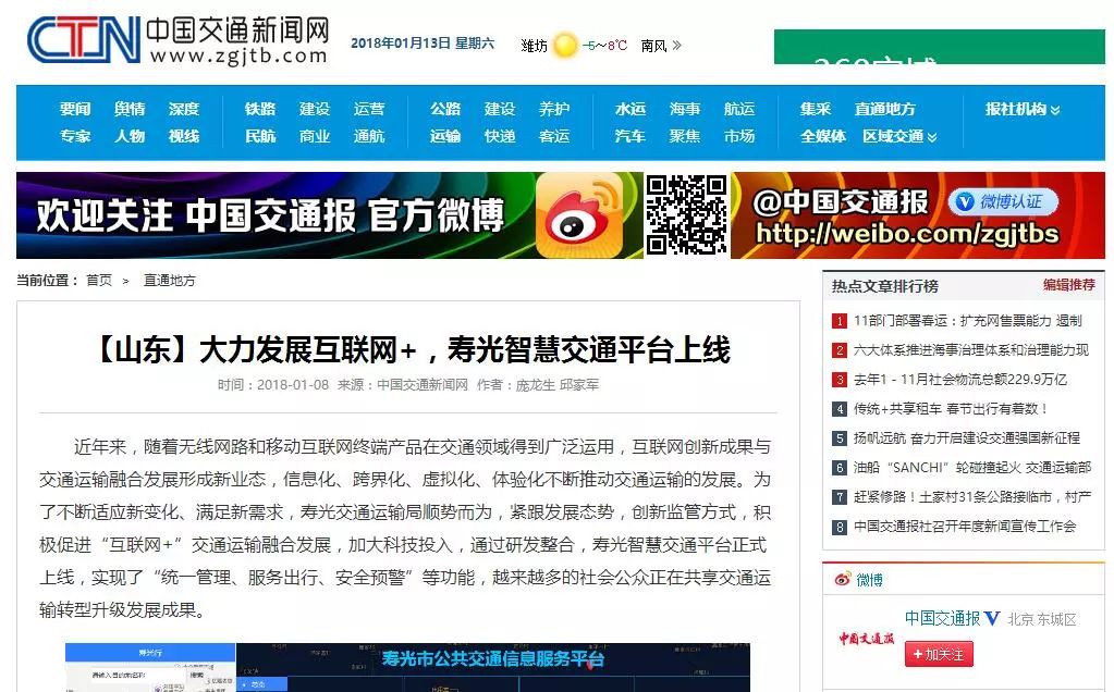 近日,由環(huán)球軟件研發(fā)并投入使用的壽光市智慧交通平臺在壽光交通運輸局正式上線。平臺憑借安全、準確、高效的管理模塊和便捷的公眾出行功能引起了行業(yè)內多家媒體的高度關注,其中,中國交通新聞網在“直通地方”板塊發(fā)文《【山東】大力發(fā)展互聯(lián)網+,壽光智慧交通平臺上線》,詳細介紹了壽光智慧交通平臺的上線實施情況,具體報道如下: