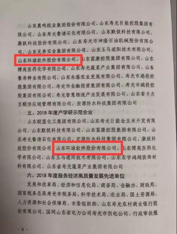2月13日,壽光市三級干部會議在濰坊科技學(xué)院國際會議中心召開。濰坊市委副書記、壽光市委書記林紅玉等市級領(lǐng)導(dǎo)班子成員出席會議。會議回顧總結(jié)了2018年全市工作,進(jìn)一步明確了今年的工作重點和奮斗目標(biāo),同時表彰2018年度先進(jìn)集體和個人。環(huán)球軟件喜獲“2018年度新舊動能轉(zhuǎn)換先進(jìn)企業(yè)”和“2018年度產(chǎn)學(xué)研示范企業(yè)”兩項榮譽稱號。