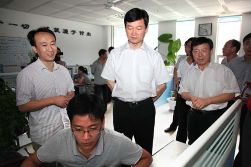 考察中,朱蘭璽市長在公司副總經(jīng)理張林的介紹下,對當前公司在政府、醫(yī)療衛(wèi)生、建設(shè)、房管、金融、公安、教育等行業(yè)自主研發(fā)的軟件產(chǎn)品及主要承接的信息化項目做了詳細了解。當了解到公司自主研發(fā)的建設(shè)施工圖審查系統(tǒng)已在國內(nèi)處于領(lǐng)先水平后,他說道:“這款軟件非常實用,當前圖審單位信息化水平較低,審圖流程復雜且工作量大,軟件的應(yīng)用有效地規(guī)范了審圖流程,大大提高了工作效率,下一步要加大產(chǎn)品宣傳力度,把研發(fā)成果全面推廣出去”。同時,朱市長對公司自主研發(fā)的區(qū)域衛(wèi)生信息平臺、中小學教育技術(shù)裝備管理系統(tǒng)、組織部發(fā)展黨員管理系統(tǒng)、數(shù)字房管等產(chǎn)品給予了高度評價,要求公司要把握時機,加強高端人才的引進,加強產(chǎn)品宣傳與推廣,快速發(fā)展,進而帶動園區(qū)的全面發(fā)展。