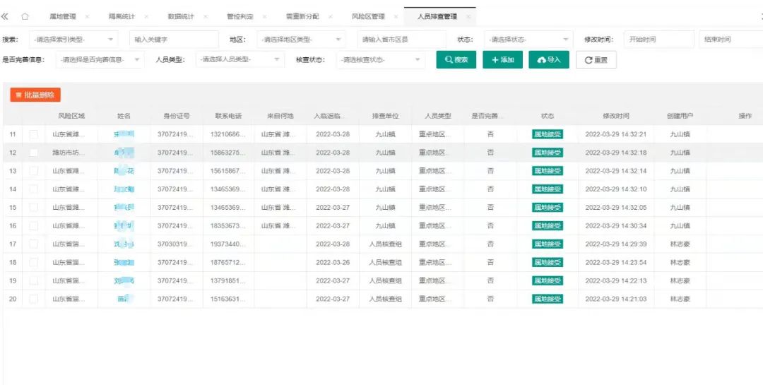 該平臺(tái)實(shí)現(xiàn)對(duì)重點(diǎn)風(fēng)險(xiǎn)區(qū)入濰人員的高效核查和精準(zhǔn)管控,對(duì)排查核查、核酸檢測(cè)、隔離管控、包靠人員、措施督導(dǎo)等環(huán)節(jié)實(shí)現(xiàn)全流程閉環(huán)管控,大幅提升了人員核查效率,做到人員管控精準(zhǔn)、防疫有效,為疫情防控提供堅(jiān)實(shí)的科技與數(shù)據(jù)保障。