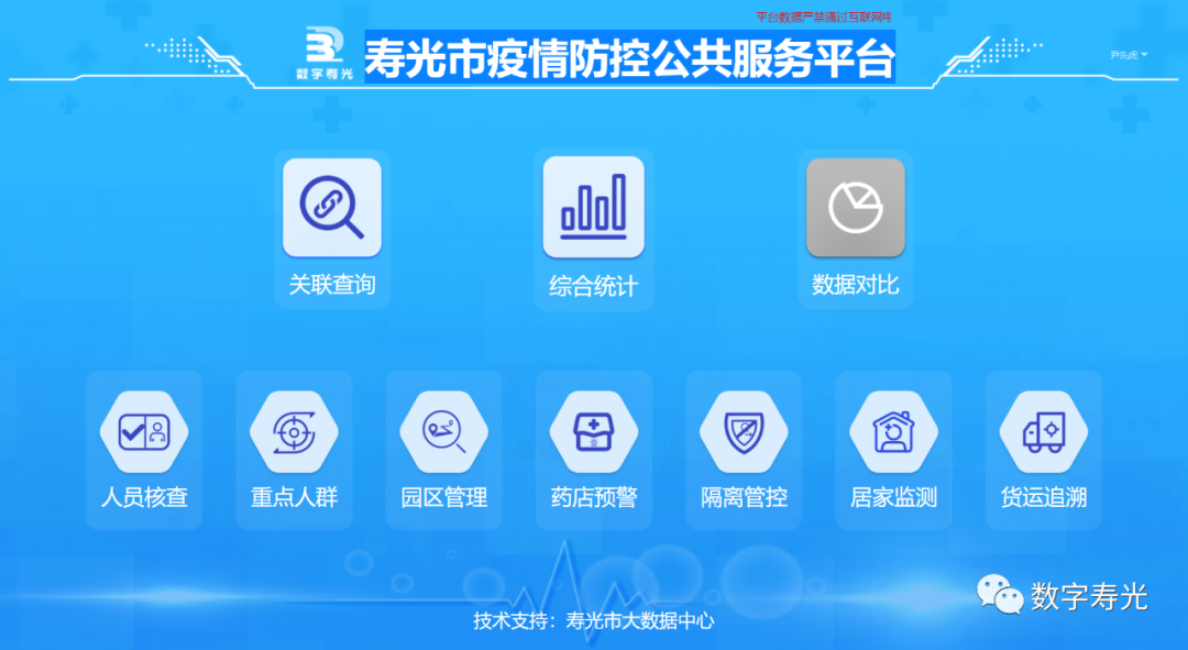 一是急用為先,逐步完善,搭建疫情防控公共平臺(tái)。以“系統(tǒng)整合、數(shù)據(jù)共享、充分利舊、簡(jiǎn)便實(shí)用”為基本原則,以“底層數(shù)據(jù)打通、中間業(yè)務(wù)關(guān)聯(lián)、上層入口統(tǒng)一”為基礎(chǔ)框架,打通系統(tǒng)間的數(shù)據(jù),建成一體多能的疫情防控公共服務(wù)平臺(tái)。平臺(tái)對(duì)原有在用的貨運(yùn)追溯、人員流調(diào)、隔離點(diǎn)管理、人員排查、藥店預(yù)警、居家健康監(jiān)測(cè)等6個(gè)疫情防控系統(tǒng)進(jìn)行優(yōu)化整合,新增關(guān)聯(lián)查詢、綜合統(tǒng)計(jì)、數(shù)據(jù)比對(duì)、重點(diǎn)人群、流動(dòng)人口、物流園管理等6個(gè)功能模塊,全面整合匯聚壽光市相關(guān)單位疫情防控業(yè)務(wù)數(shù)據(jù),申請(qǐng)對(duì)接上級(jí)返還數(shù)據(jù),搭建起統(tǒng)一的疫情防控?cái)?shù)據(jù)庫(kù),有效支撐各工作專班、市直部門單位和鎮(zhèn)街的疫情防控?cái)?shù)據(jù)需求,實(shí)現(xiàn)疫情防控工作的全流程閉環(huán)管理。