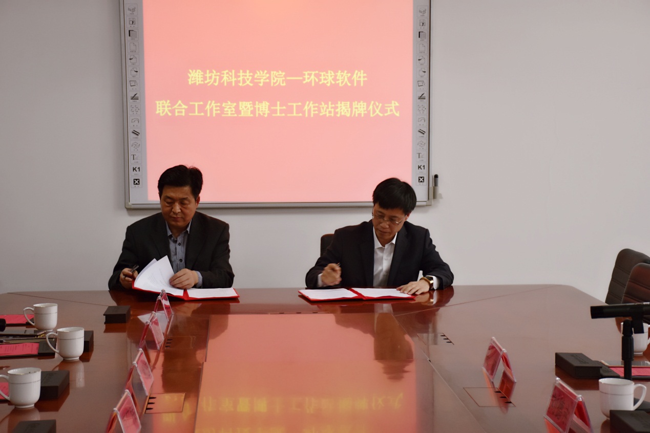 濰坊科技學(xué)院副校長李廣偉與環(huán)球軟件公司董事長劉德永簽署合作協(xié)議