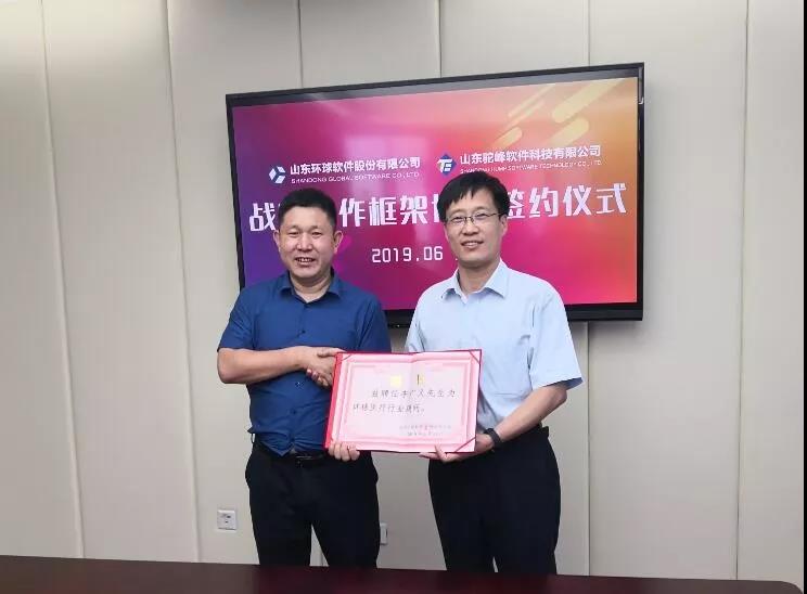 駝峰軟件總經(jīng)理程濤與環(huán)球軟件董事長劉德永簽署戰(zhàn)略合作框架協(xié)議