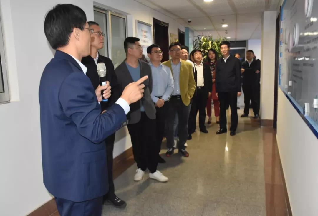 在公司大廳,趙市長一行了解公司業(yè)務(wù)開展情況